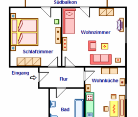 2-Zimmer-Nichtraucher-Wohnung im 1. Stock für 1 – 2 Personen, ca. 50 qm