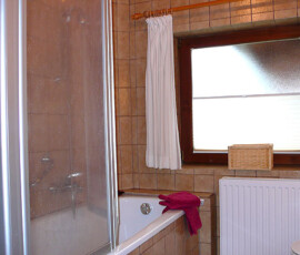 - Bad mit Badewanne, Waschbecken, WC und Fön