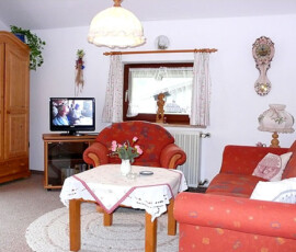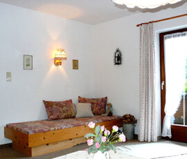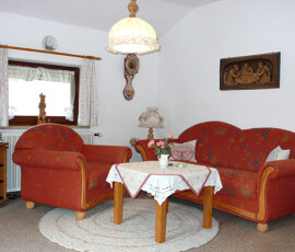 - Wohnzimmer mit Couchgarnitur, Liege, SAT-TV und Radio und CD-Player