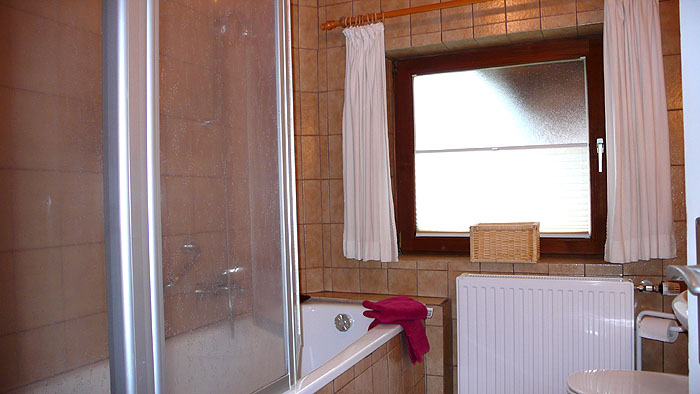 - Bad mit Badewanne, Waschbecken, WC und Fön