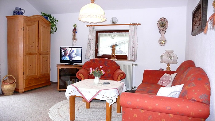 - Wohnzimmer mit Couchgarnitur, Liege, SAT-TV und Radio und CD-Player